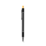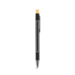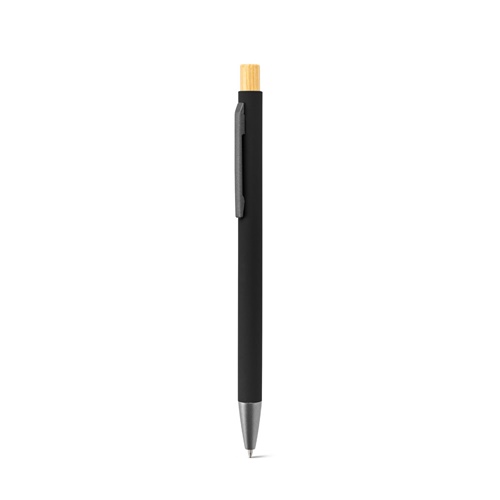 Stylo à bille en aluminium recyclé (100 % RAL) avec finition en caoutchouc. Son design minimaliste associe des détails gris métallisé mat et un bouton en bambou à l'extrémité. Il est doté d'un clip et d'une écriture bleue. Une fois gravé au laser, la couleur de personnalisation deviendra argentée. Le produit étant fabriqué à partir de matériaux naturels, la couleur du produit ainsi que le résultat de l'impression peuvent varier d'un produit à l'autre. ø9 x 135 mm