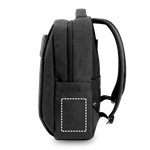 Sac à dos pour ordinateur portable entièrement rembourré en polyester recyclé haute densité 300D et doublure en polyester recyclé 210D. Il dispose d'un compartiment principal pour un ordinateur portable jusqu'à 15.6" et de plusieurs poches. 2 poches avant zippées et 1 poche latérale pour transporter votre bouteille. Le dos intègre une sangle pour trolley. Capacité jusqu'à 18 L. 300 x 430 x 140 mm
