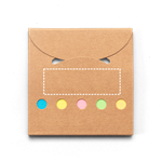Set de bureau fabriqué à partir de papier 100 % recyclé, comprenant 6 blocs-notes autocollants. Il comprend 1 bloc-notes autocollant de 20 feuilles de papier jaune 100 % recyclé et 5 petits blocs-notes autocollants (60 g/m²) de 20 feuilles chacun, en papier 100 % recyclé de différentes couleurs : orange, vert clair, rose, jaune et bleu. ouvert: 205 x 85 mm | Fermé: 85 x 85 mm