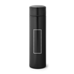 Bouteille en acier inoxydable avec couvercle et thermomètre numérique. Corps à double isolation sous vide, capacité jusqu'à 470 mL. Comprend un infuseur interne et une pile CR2032. Fourni dans une boite cadeau. ø65 x 229 mm | Boîte: 73 x 73 x 270 mm