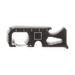 Carte multifonction en acier inoxydable. Comprend 8 fonctions: scie, coupe-câble, clé, tournevis, tournevis cruciforme, règle graduée, décapsuleur et porte-clés. 80 x 30 mm