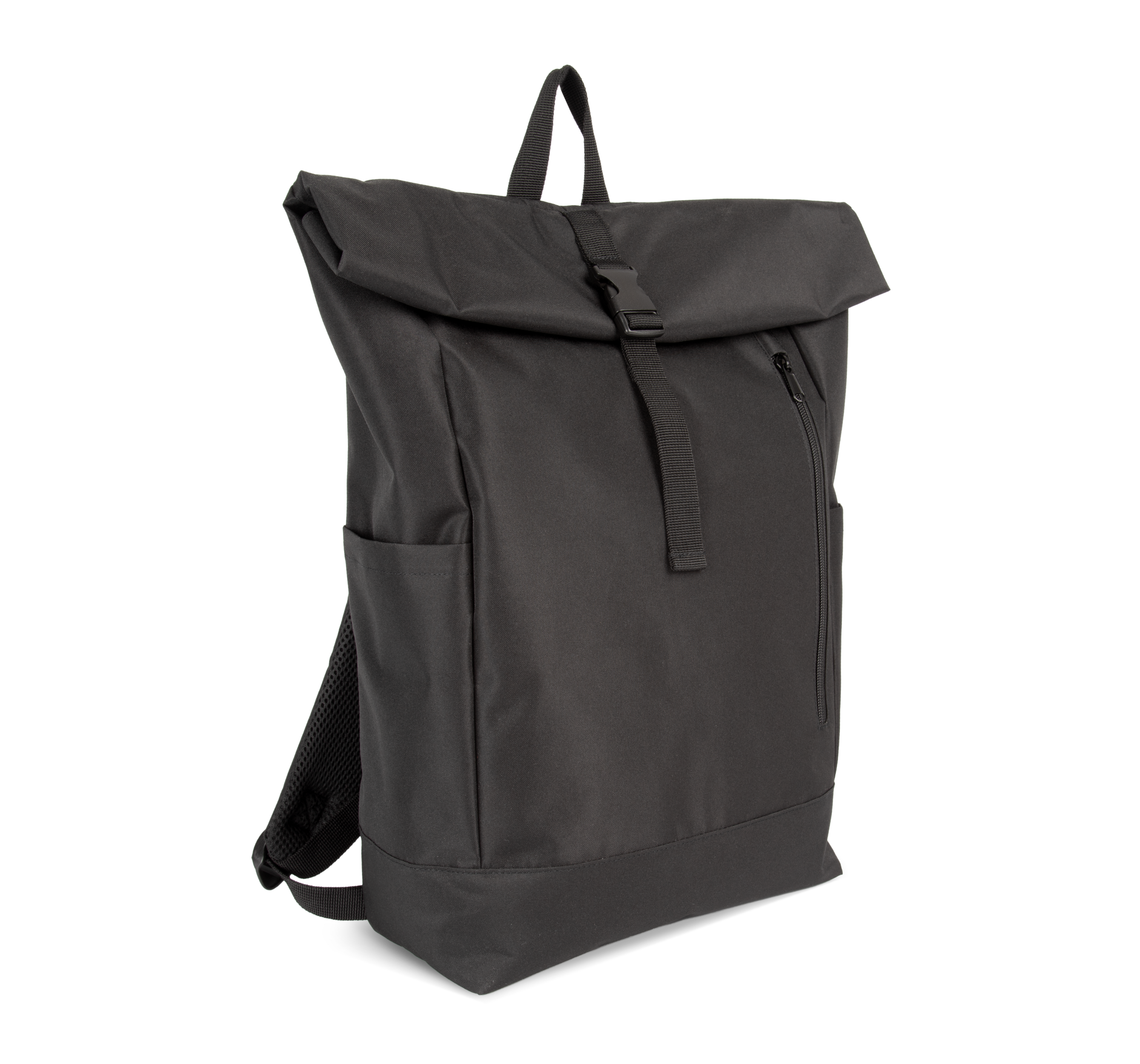 100% polyester. Sac à dos avec fermeture Roll-Top par boucle ajustable. Grande poche frontale facilitant la personnalisation. Poche de sécurité au dos. Bretelles rembourrées. Poches latérales de rangement. Compartiment intérieur matelassé pour ordinateur portable avec poche pour accessoires ou tablette. Panneau intérieur avant avec poches de rangement et porte-stylos.Fermeture Roll-top ajustable pour plus de flexibilité.Compartiment PC matelassé et poche accessoires.Poche de sécurité au dos pour effets personnels.380 g/m²