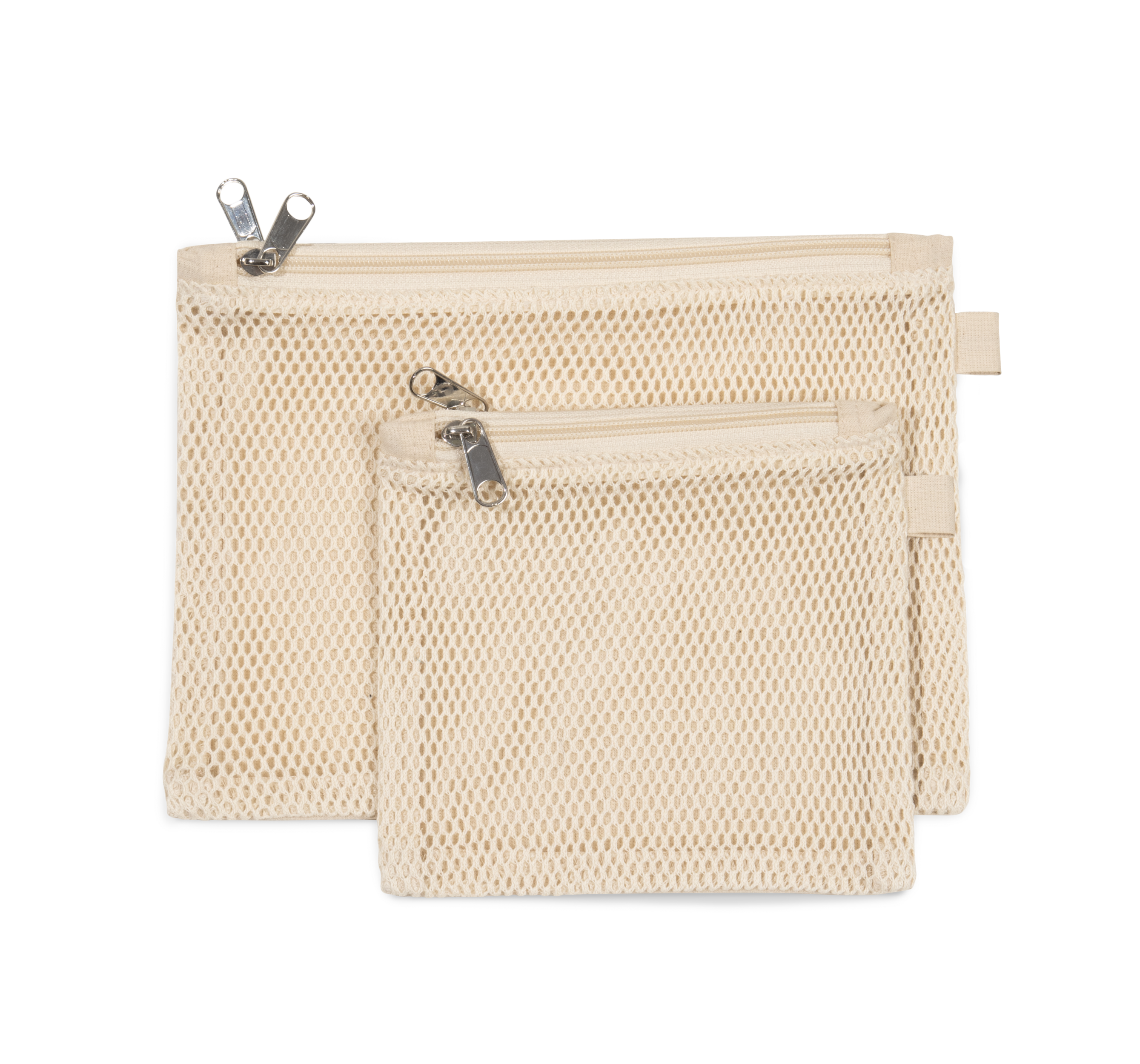 100% coton. Trousse à double compartiment dont un en coton canvas et le second en filet de coton, tout deux fermés par une fermeture zippée. Existe en deux formats.Face avant en filet pour un rendu original et une bonne visibilité du contenu de la trousse.Face arrière en coton canvas afin de faciliter la personnalisation.2 formats existants.150 g/m²