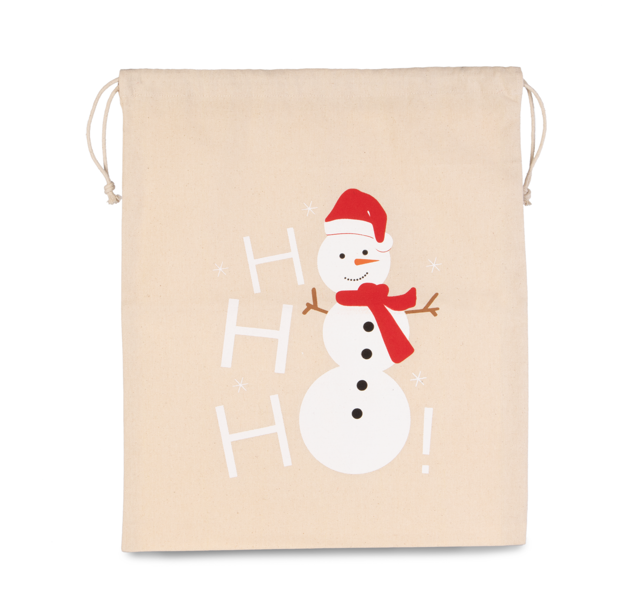 100% coton. Sac avec fermeture cordon en corde, imprimé bonhomme de neige.Résistant et facile à personnaliser.Impression bonhomme de neige originale et ludique.Fermeture cordon en corde, esthétique et pratique.220 g/m²