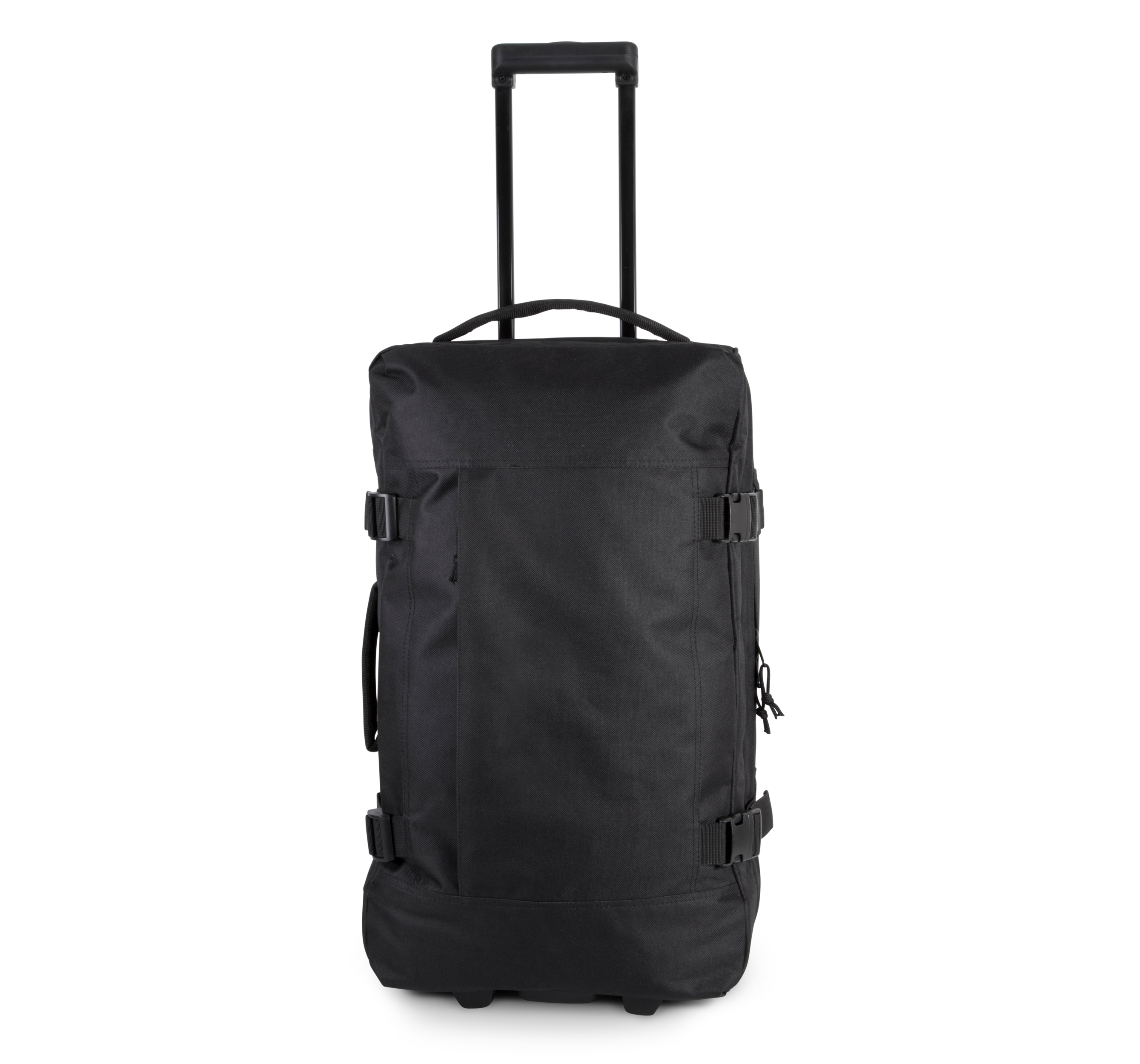 Sac trolley en polyester 600D avec grande poche zippée à l'avant pour faciliter la personnalisation. 2 compartiments internes avec sangles de maintien. Système de trolley rétractable. Sangles extérieures pour ajuster le volume. Base avec renforcement en relief et points d'arrêt sur les poignées.Grande poche zippée à l'avant pour faciliter la personnalisation.2 compartiments internes avec sangles de maintien.