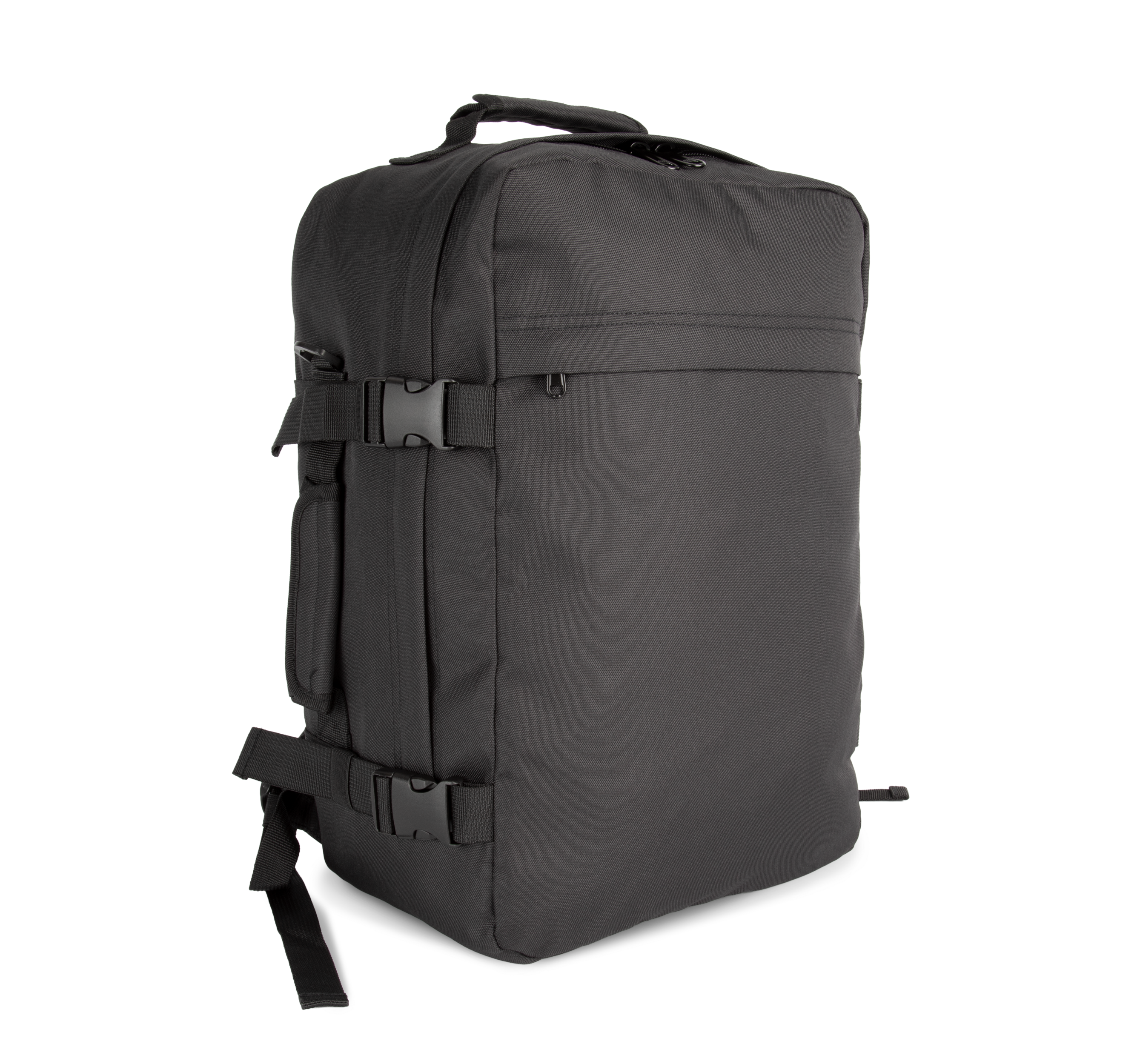 100% polyester. Sac à dos de voyage au format cabine. Ouverture à plat avec fermeture zippée pour un rangement facile des vêtements. Poignées supérieures et latérales rembourrées pour un transport facilité. Bretelles ergonomiques, respirantes et rembourrées, tout comme le dos, pour un confort optimal. Grande poche frontale zippée, idéale pour la personnalisation. Deux poches intérieures de rangement sur le panneau frontal. Grande poche intérieure zippée sur le panneau arrière, parfaite en tant que second compartiment. Boucles avec sangles de compression sur les panneaux latéraux.Ouverture à plat avec fermeture zippée pour un rangement facile.Format cabine avec poignées rembourrées.Bretelles et dos respirants.300 g/m²