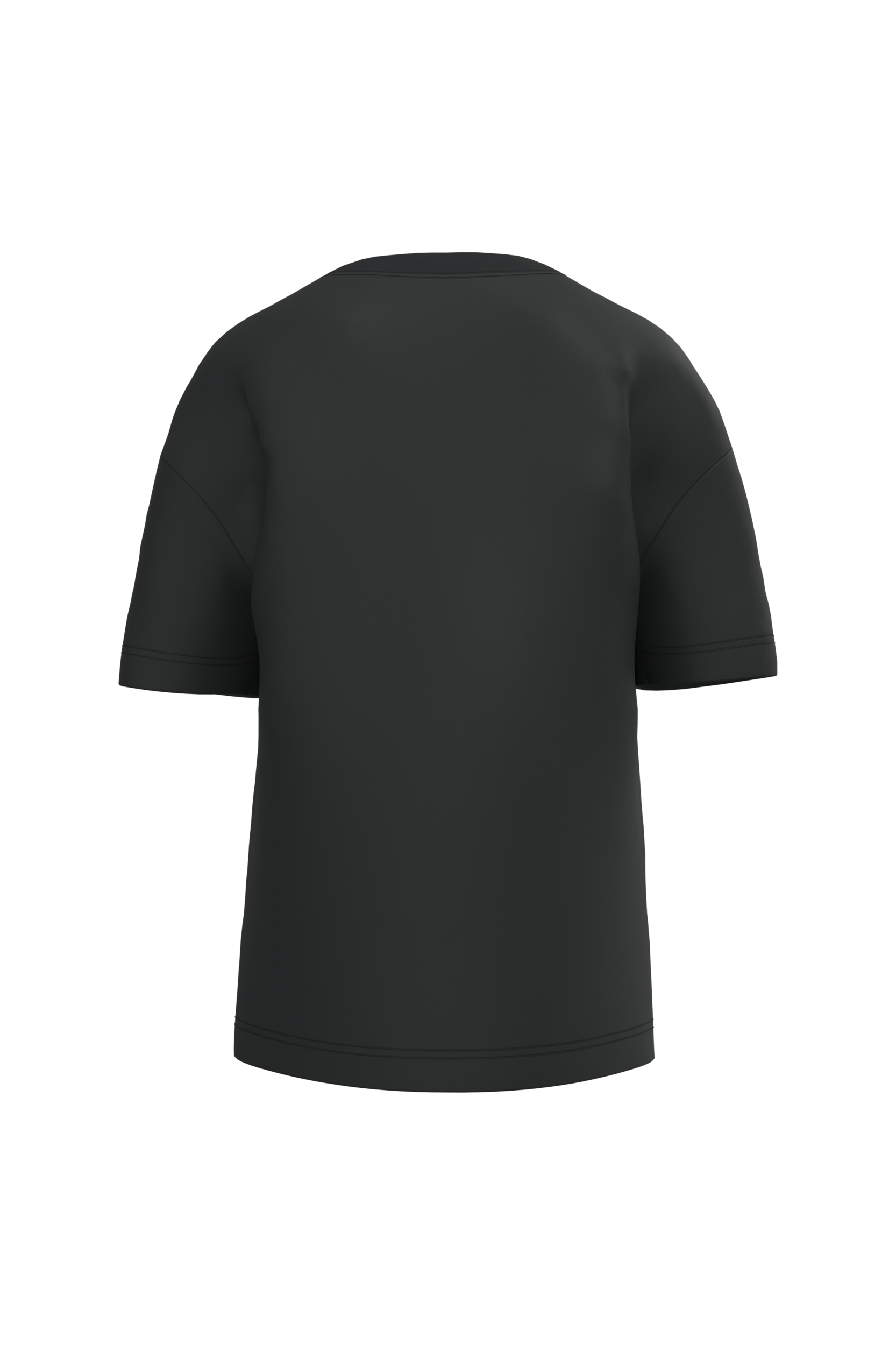 100% coton biologique. Coton peigné. Coupe oversize à épaules tombantes. Lavé aux enzymes. Coutures latérales. Bord côte col 1 x 1. Finition intérieur col avec bande de propreté en matière principale ton sur ton. Renfort épaule. Ourlet double surpiqûres bas de manches et de vêtement.