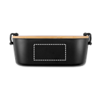 Récipient hermétique en PP avec couvercle en bambou et boucles de sécurité latérales. Lavable au lave-vaisselle et au micro-ondes, après avoir retiré le couvercle. Capacité maximale de 1 L. Le produit étant fabriqué à partir de matériaux naturels, la couleur du produit ainsi que le résultat de l'impression peuvent varier d'un produit à l'autre. 200 x 107 x 70 mm