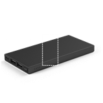 Batterie nomade en aluminium recyclé (100 % rAL). Batterie portable d'une capacité de 5 000 mAh, indicateur de niveau de charge, un port d'entrée/sortie USB-C et deux ports de sortie USB-A. Comprend un câble de charge USB-C. Fourni dans une boîte cadeau en papier kraft recyclé. 11 x 130 x 64 mm | Etui : 82 x 20 x 131 mm