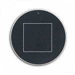 Chargeur sans fil rapide en aluminium et ABS. Avec entrée USB-C et puissance de charge maximale de 10 W pour une charge rapide. Comprend un câble USB-C de 1 m. Compatible avec les appareils mobiles dotés de la technologie de charge sans fil. Livré dans un coffret cadeau. Chargeur: ø98 x 6 mm | Câble: 1000 mm