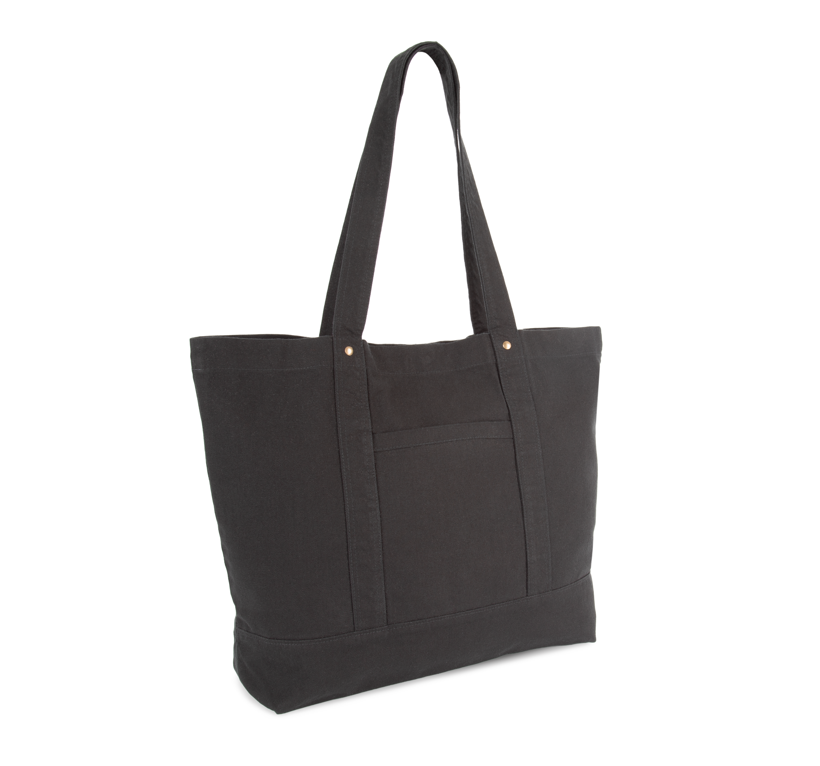 100% coton. Sac grand format avec large fond et soufflet en coton délavé, pour un look vintage. Les produits lavés sont uniques et peuvent présenter de légères variations de couleur. Anses de la même matière que le corps du sac. Rivets décoratifs de sécurité entre les anses et le corps du sac. Grande poche intérieure zippée pour ranger clés et téléphone. Poche extérieure facilitant la personnalisation. Fermeture par bouton-pression.Coton délavé.Fond avec soufflet.Grande poche intérieure zippée.310 g/m²