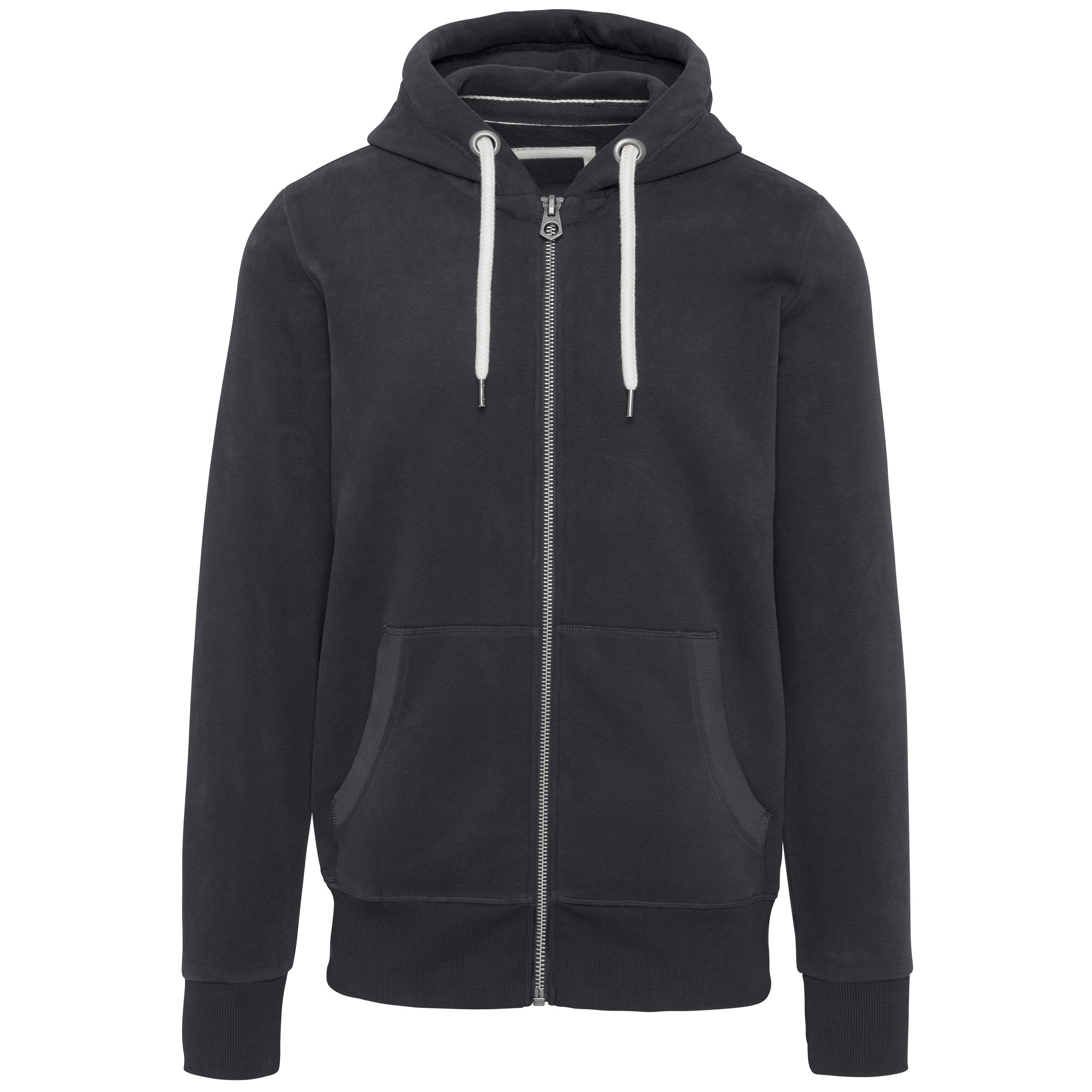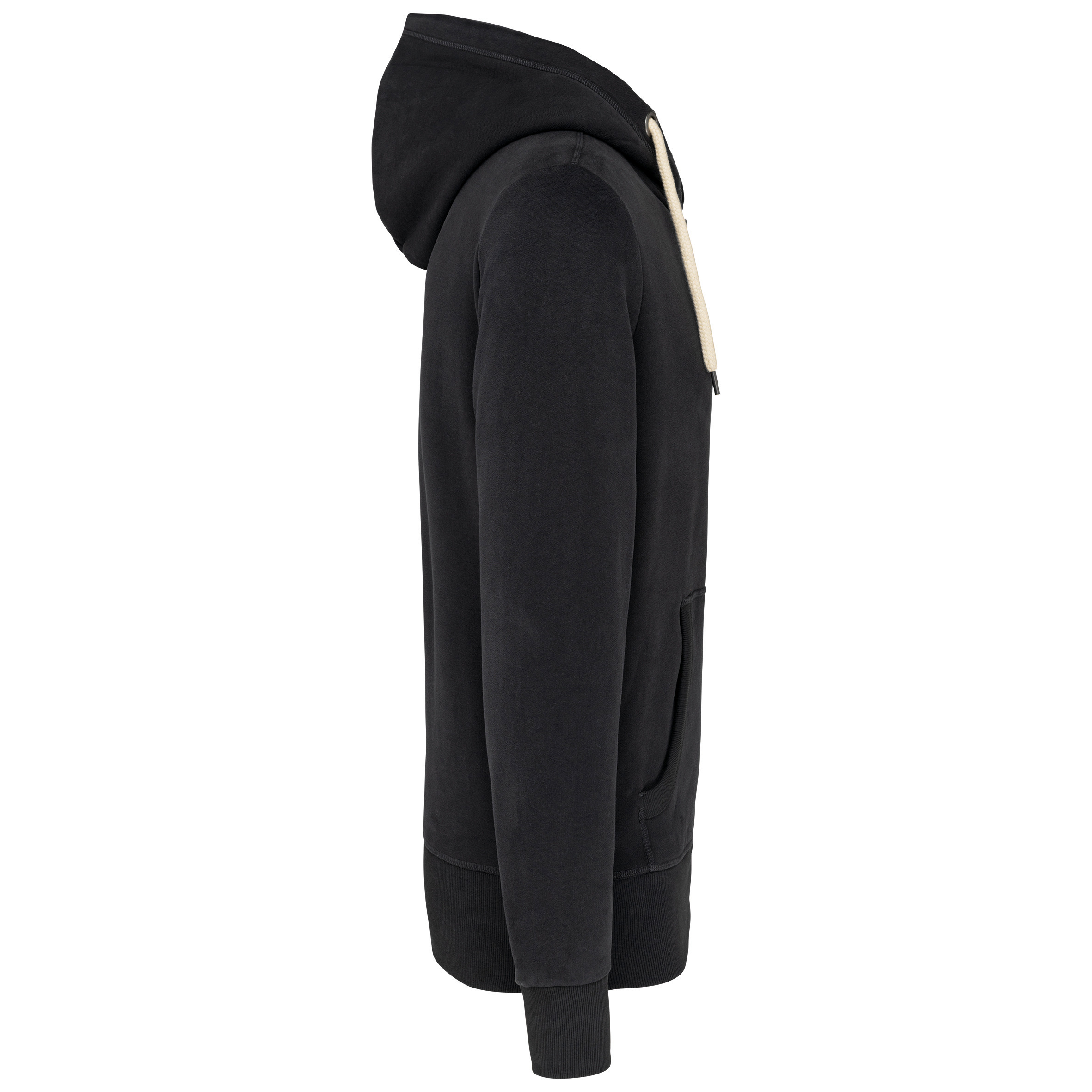 80% coton / 20% polyester (Ash Heather : 79% coton / 20% polyester / 1% viscose). Molleton gratté. Toucher peau de pêche et aspect "Vintage". Fermeture zippée métal. Capuche doublée. Cordon capuche rond et contrasté. Double bande de propreté en chevron à l'encolure. Poches kangourou. Finition bord-côte bas de manche et bas de vêtement. Ce produit a subi un traitement spécial et présente un aspect volontairement vieilli. Ce procédé de fabrication implique des variations de couleurs d'un produit à l'autre et rend chaque pièce unique. Pas d'étiquette de marque, uniquement une indication de taille pour faciliter la personnalisation.Aspect vieilli pour un look unique et tendance.Molleton gratté doux et confortable avec finition toucher peau de pêche.Collection Vintage. NO LABEL.350 g/m²