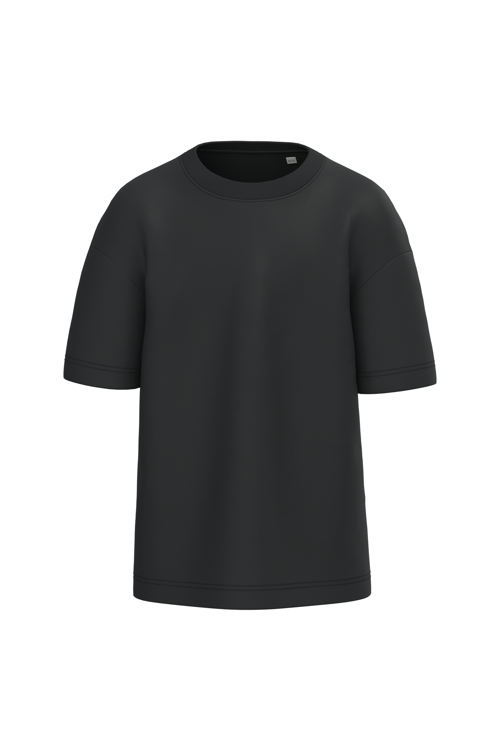 100% coton biologique. Coton peigné. Coupe oversize à épaules tombantes. Lavé aux enzymes. Coutures latérales. Bord côte col 1 x 1. Finition intérieur col avec bande de propreté en matière principale ton sur ton. Renfort épaule. Ourlet double surpiqûres bas de manches et de vêtement.