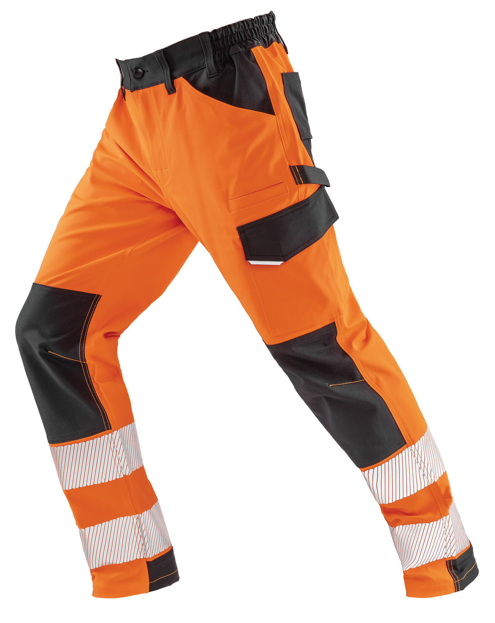50% polyester recyclé / 50% Elastomultiester. Tissu extensible, respirant et infroissable. 9 poches dont multi-compartiments et poche mètre renforcée. Ceinture élastiquée, coutures triples, genoux renforcés. Bandes de sécurité imprimées, fermeture zippée. Passant pour marteau. Normes EN ISO 20471 Classe 2 – RIS-3279-TOM Classe 2.Pantalon de sécurité avec tissu extensible, respirant et infroissable.Conforme à la norme EN ISO 20471 Classe 2 – RIS-3279-TOM Classe 2.280 g/m²